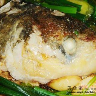 原料:苦瓜、香菜、葱、大鱼头、鸡蛋、姜片、蒜子、蚝油、生粉、盐。