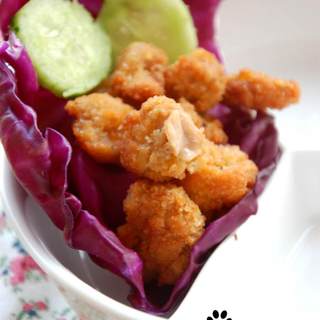 原料:鸡腿、面粉、蛋液、面包糠、料酒、蒜泥、盐、糖。