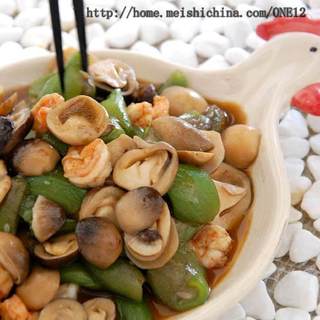 原料:新鲜大虾、生粉、盐、料酒、胡椒、丝瓜、草菇、鸡精。
