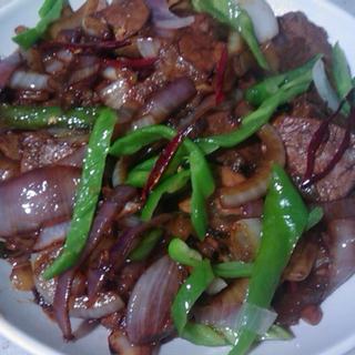 原料:牛腩、洋葱、青辣椒、生抽、老抽、干辣椒。