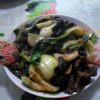 原料:小油菜、水发木耳、葱、姜、蒜、醋、酱油、植物油、番茄酱、芝麻酱、腐乳汁、大料、八角、花椒、香叶、桂皮、陈皮、盐巴、味精、鸡粉、水淀粉、白胡椒粉。