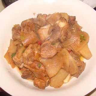 原料:排骨、萝卜、葱、大蒜、干辣椒、桂皮、陈醋、豆豉油、老抽。