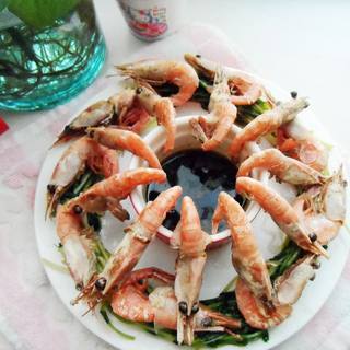 原料:加拿大北极虾、豌豆苗、葱段、姜块、生抽、料酒、胡椒粉、香醋。