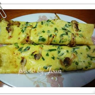 原料:蛏子、香菜、面粉、鸡蛋。