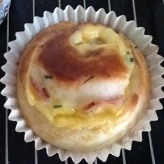 原料:水、蛋液、盐、糖、高粉、奶粉、酵母、黄油、奶酪片、培根、沙拉酱、香葱。
