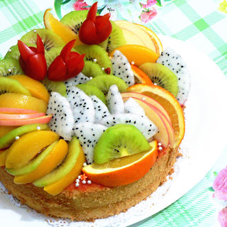 原料:低粉、蛋黄、砂糖、色拉油、纯牛奶、盐、柠檬汁、时令水果、镜面果胶。