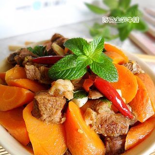 原料:牛腱肉、胡萝卜、鲜薄荷。