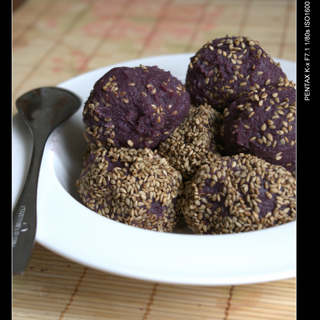 原料:紫薯、奶酪、白芝麻、蜂蜜。