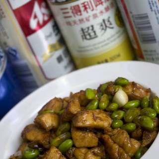 原料:鸡胸、毛豆、蒜头、啤酒、盐、糖、淀粉。