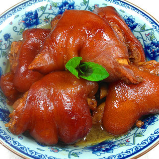 原料:猪蹄、糖、盐、姜、花椒、大料、香叶、草果、肉蔻、醋、丁香、老抽、山楂。