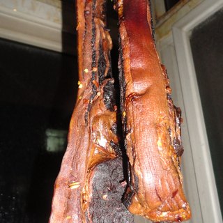 原料:五花肉、葱姜蒜、花椒、大茴香、料酒、食盐、白糖、老抽。