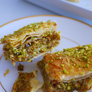 原料:酥皮、核桃仁、开心果仁、蜂蜜、黄油、白糖。