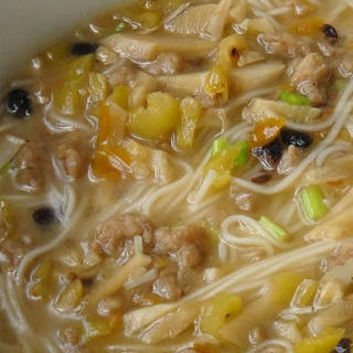 原料:碎肉、酸笋、豆豉、酸辣椒、蒜蓉、辣椒酱、蒜米、葱花、湿面、棒子大骨汤、猪油、鸡精、酱油、盐、米醋。