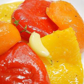 原料:黄色彩椒、橙色彩椒、红色彩椒、海盐、特级初榨橄榄油、百里香、蒜瓣、黑胡椒粉。