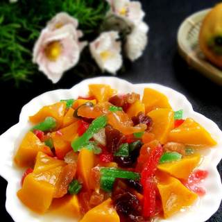 原料:小南瓜、蜂蜜、果脯。