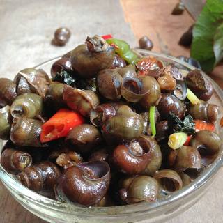 原料:田螺、辣椒、豆鼓、大蒜、紫苏、生姜、大葱、盐、酱油、花生油、酒、白糖。