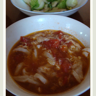 原料:面粉、鸡蛋、西红柿、小葱、油、盐。