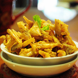 原料:大鱼鱼鳞、面粉、鸡蛋、料酒、五香粉、胡椒粉、盐、生抽。