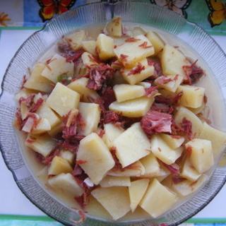 原料:土豆、风干肉、葱、姜、盐、鸡精。