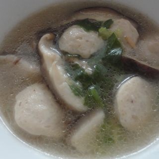 原料:香菇、丸子、瘦肉、芹菜、姜、盐、味精、酱油、醋、海鲜粉、地瓜粉。