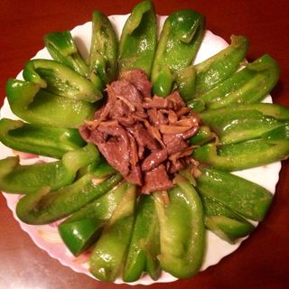 原料:青椒、牛肉、生姜、食用油、黑椒汁、食盐、白胡椒粉、生粉、蚝油。