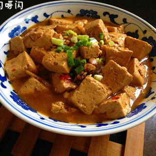 原料:豆腐、葱、姜、花椒、盐、酱油、自制豆瓣酱、味精、菜籽油。