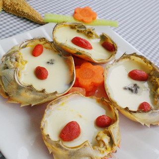 原料:大闸蟹、鸡蛋、盐、温开水、枸杞子、野山菇。