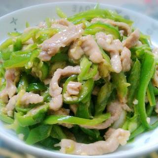 原料:瘦肉丝、青椒丝、姜、蒜、鸡精、盐、生抽。