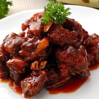原料:猪仔排骨、冰糖、酱油、醋、料酒、葱段、熟芝麻、姜片、油、盐。