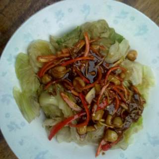原料:生菜、干贝、姜丝、辣椒、水淀粉、盐、蚝油。