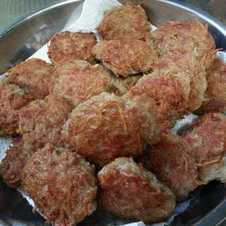 原料:猪肉、鸡蛋、酱油、糖、生粉、料酒。