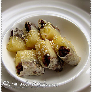 原料:土豆、黄河滩红枣、加盐黄油、春卷皮、白芝麻。