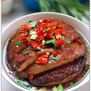 原料:带皮五花肉、干空心菜、红辣椒、葱、姜、花生油、盐、红糖、老抽。