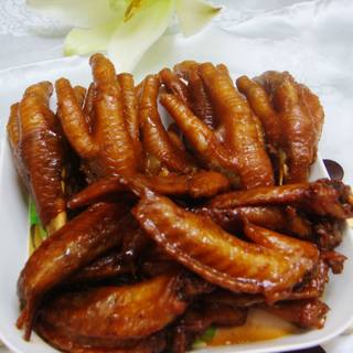 原料:鸡脚、鸡翅尖、酱油、冰糖。