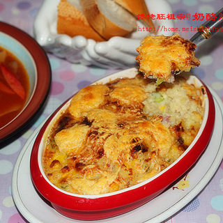 原料:土豆、培根、青豆、甜玉米、洋葱、鸡蛋、食盐、胡椒粉、淡奶油、总统黄油、总统奶酪、欧芹。