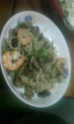 原料:大葱姜、大虾、口蘑、青椒、三鲜伊面。
