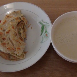 原料:黄豆、白面、葱、鸡蛋、油、椒盐、腊肠。