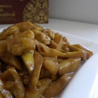 原料:天贝、春笋、青蒜、糖、盐、料酒、酱油、味精、香油、油、淀粉。