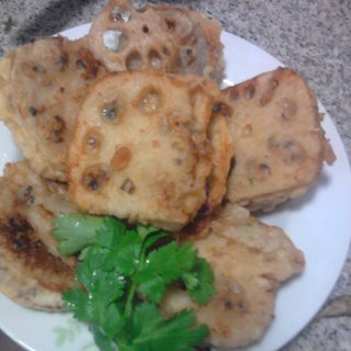原料:鸡肉、香菇、藕、葱姜末、面粉糊、盐、味素、色拉油、酱油、自制葡萄酒。