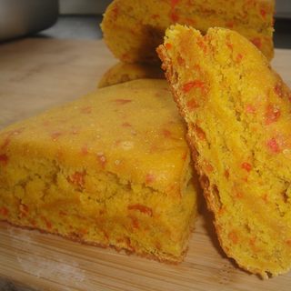 原料:普通面粉、玉米面粉、枸杞子、泡打粉、酵母粉。