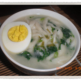原料:鲫鱼、面粉、葱姜、菠菜、鸡蛋。