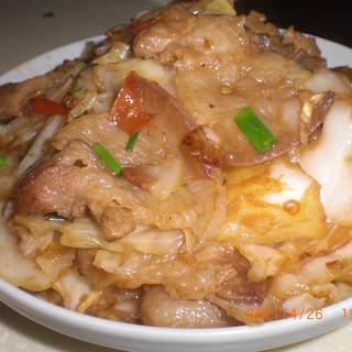 原料:包菜、五花肉、葱、姜、料酒、豆瓣酱、自制辣酱。