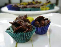 原料:巧克力、玉米片、七彩糖霜、杏仁碎、巧克力米。