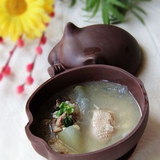 原料:冬瓜、老鸭、薏米、油、料酒、葱姜段、盐。