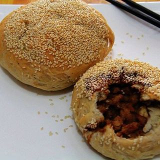 原料:面粉、鸡胸肉、鱿鱼、酵母粉、酱油、辣酱、盐、香油、色拉油、辣椒粉、白芝麻、老抽、料酒。