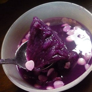 原料:紫薯、杏仁、冰糖、西米露、水。