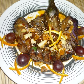 原料:长条茄子、蒜头、白芝麻、豆瓣酱、酱油、醋、盐、味精。