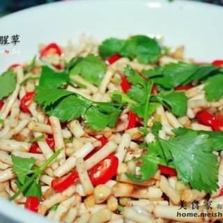 原料:鱼腥草、红椒、大葱、蒜头、香菜、生抽、鲜贝露、黑胡椒粉、芝麻油。