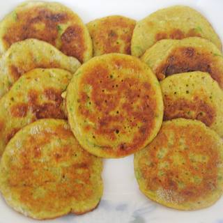 原料:豆渣、鸡蛋、面粉、盐、葱花、植物油。