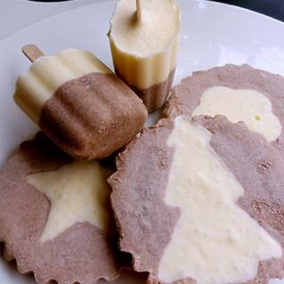 原料:蛋黄、白砂糖、牛奶、鲜奶油、香草柄、可可粉、抹茶粉。